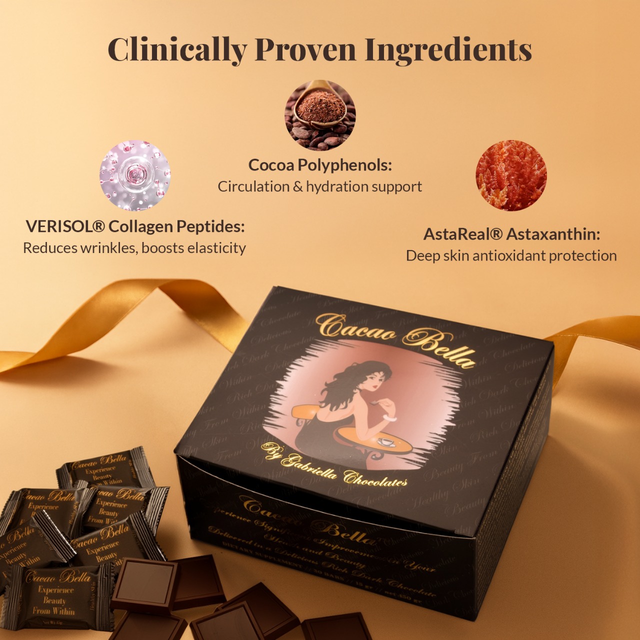 Upgrade your daily routine with Cacao Bella®—the beauty chocolate designed to love your skin back.
